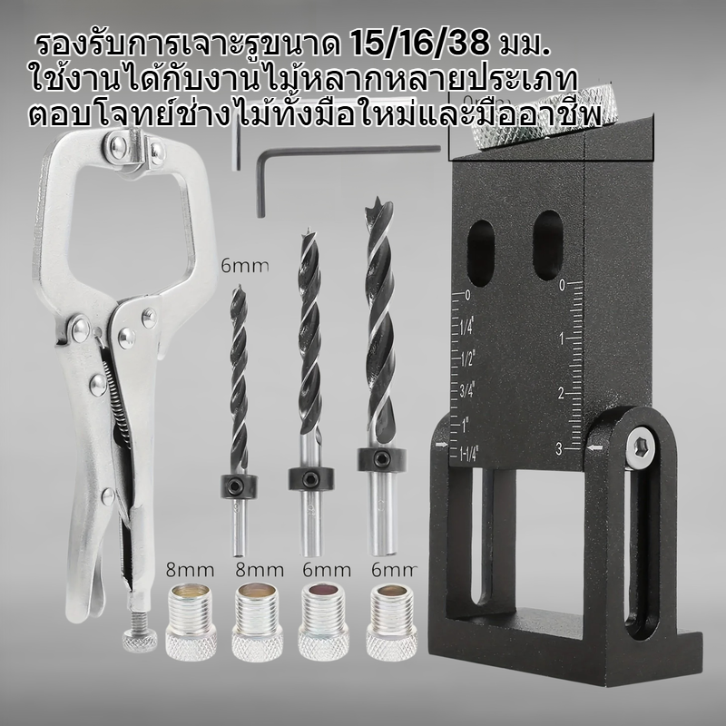 ตัวระบุตำแหน่งเจาะรูงานไม้ 15/16/38 ดำ ปรับมุม 15 องศา สำหรับติดตั้งแบบเชื่อมมุม รุ่นใหม่